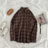Denna rutiga långärmade skjorta för damer utstrålar en klassisk koreansk stil, perfekt som ytterplagg på våren.. Tillverkad av högkvalitativ polyester, den har en lös passform som säkerställer komfort och mångsidighet för personer med större storlekar.. Skjortan är designad med en snygg nedvikt krage, vilket förstärker dess retro-känsla.. Perfekt för lager på lager, detta plagg tillför en touch av tidlös elegans till vilken garderob som helst.