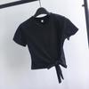 Upptäck samtida chic med denna dam-crop-t-shirt med smal passform och knytning, perfekt för sommarstyling.. Tillverkad av lyxig mjölksilke och konstsilke, erbjuder den en silkeslen känsla mot huden.. Det enfärgade mönstret förstärker dess mångsidiga dragningskraft, vilket gör det enkelt att kombinera med vilken outfit som helst.. Designad med korta ärmar och en smickrande rund halsringning, är den det idealiska valet för dem som omfamnar modernt koreanskt sommarmode.