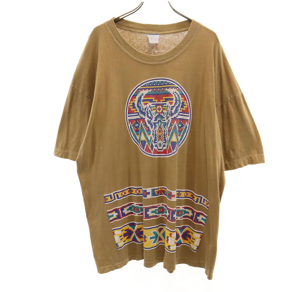 OLD 90s native pattern Short sleeve T-shirt Brown Single stitch Men's Used