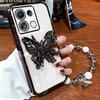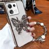 3D Butterfly Phone Holder Bead bracelet Glitter Plating Case for Xiaomi Redmi Note 13 Pro Plus 4G 5G Back Cover