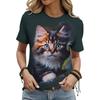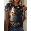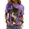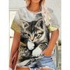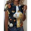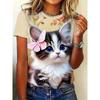 Cute Cartoon Cat Pattern For Women Funny Animal 3D Printed Short Sleeves Summer Oversized O-Neck Tops