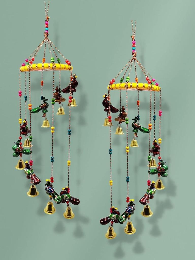 Colored Bell Wind Chime, Door/Wall Hanging Decorative Showpiece/Wall Hanging/Home Décor/Corporate Gift (Pack of 2, Peacock)