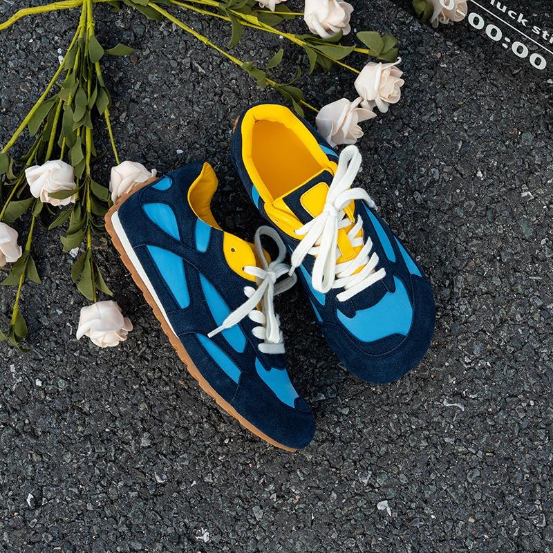 Leather retro women's new versatile round head flat bottom color matching lace-up sports and leisure shoes women