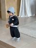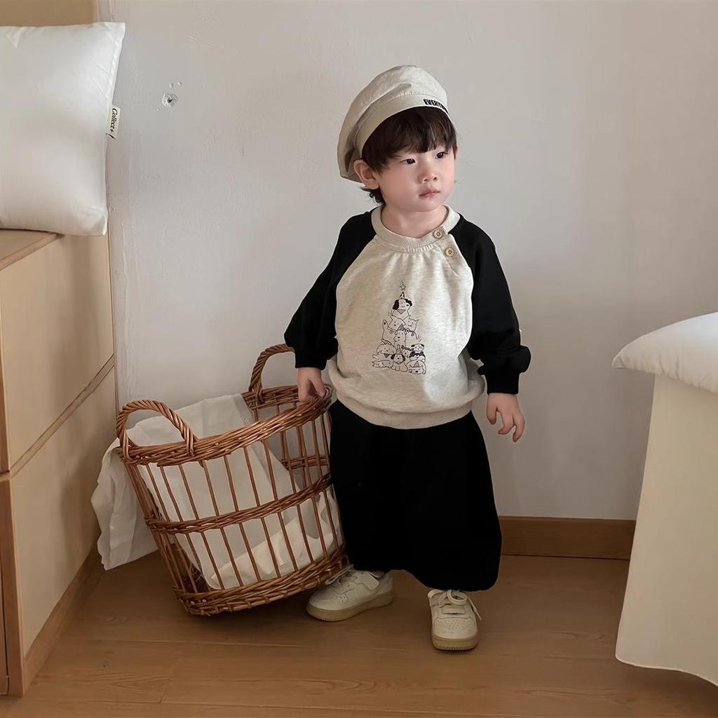 Detta bedårande tvådelade set är perfekt för din lilla! Denna outfit, med ett charmigt tecknat tryck, förkroppsligar den lekfulla och trendiga koreanska stilen.. Setet inkluderar en långärmad raglantopp, som säkerställer komfort och rörelsefrihet, tillsammans med perfekt matchande underdelar.. Tillverkad av mjuk och andningsbar bomull, är den skonsam mot ditt barns hud, vilket gör den idealisk för vardagsbruk eller speciella utflykter under de svalare höstmånaderna.. Denna stiliga och mysiga ensemble kommer säkert att bli en favorit i ditt barns garderob.
