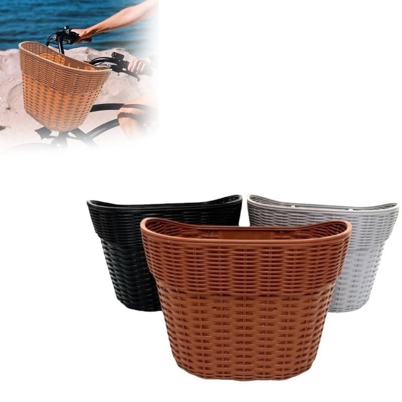 Crafted from high-quality plastic, this basket promises durability and resilience, capable of withstanding various weather conditions and daily wear and tear. The material makes it lightweight yet sturdy, ensuring it won't add unnecessary weight to your ride while still being able to carry your essentials securely. Available in three sophisticated colorsblack, brown, and graythis basket seamlessly complements any bike, adding a touch of vintage flair to your modern ride.