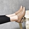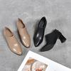Spetsiga damsinglar högklackade vårnyhet första lager koskinn djup mun damskor tjock klack bakre dragkedja grundläggande