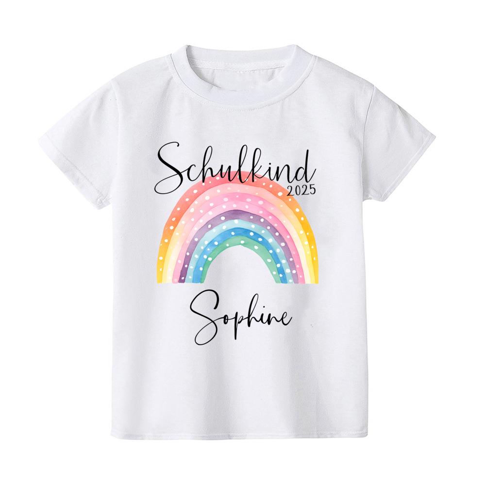 Söt skolbarns-t-shirt med namn Regnbåge Skolbarn 2025 T-shirts Personlig Första klass t-shirt Gåva första skoldagen