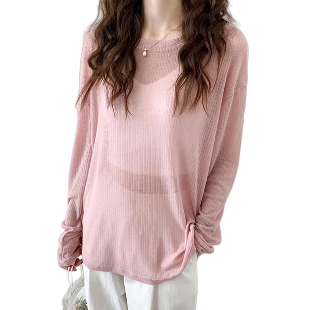 Damstickad Tröja Sommarstickad Topp, Lös Passform, Tunn, Genombruten Stickad Topp, Genomskinlig, Genomskinlig, Elegant, Vardaglig, Söt, Vår, Sommar, Höst, Fluffig, Luftig Blus, Långa Ärmar, Genomskinlig, Rund Hals, Andningsbar, Snygg, Figursmickrande, Enfärgad