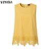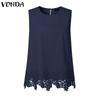 VONDA Women O Neck Sleeveless Back Bow Lace Crochet Patchwork Casual Tank Tops