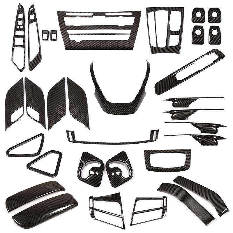 För BMW X5 F15 X6 F16 2014-2018, Ratt, Instrumentpanel, Mittkonsol Växelväljare, Paneldekal, Bilinteriör Kolfiberdekorationsskydd
