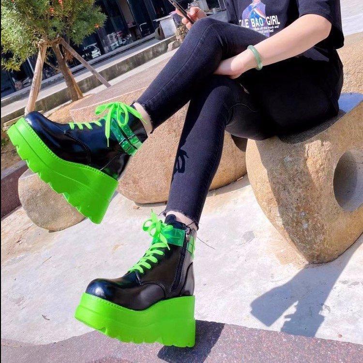 Martin shoes new European and American bright leather lace-up platform short boots women's large size women's boots