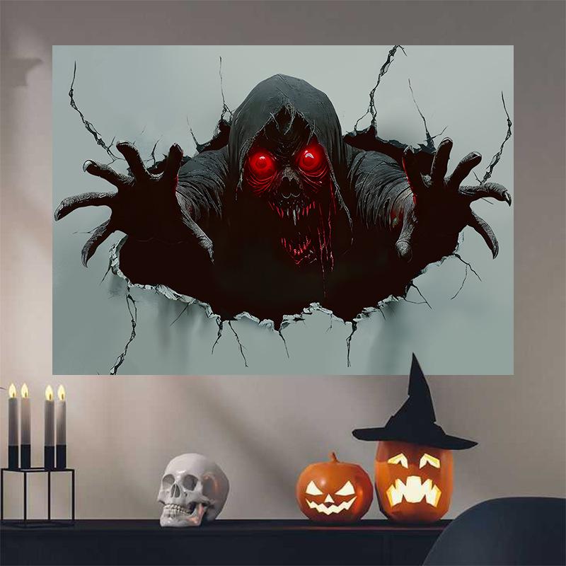 2025 Halloween Scary Skeleton & Red Eye Wall Sticker for Haunted House Décor