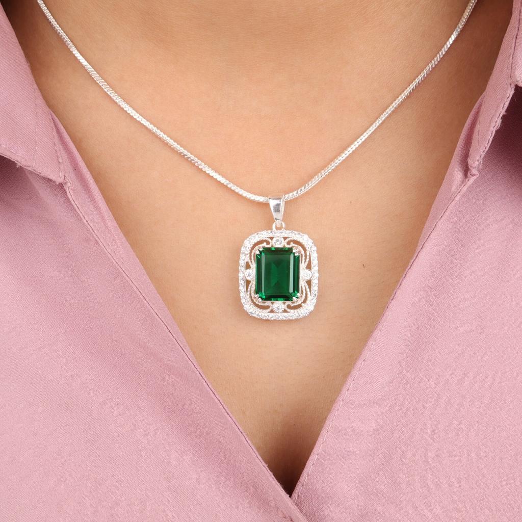 Chrome Diopside Gemstone 925 Fine Silver Jewelry Zircon Pendant For Wedding Gift CZP-11-2
