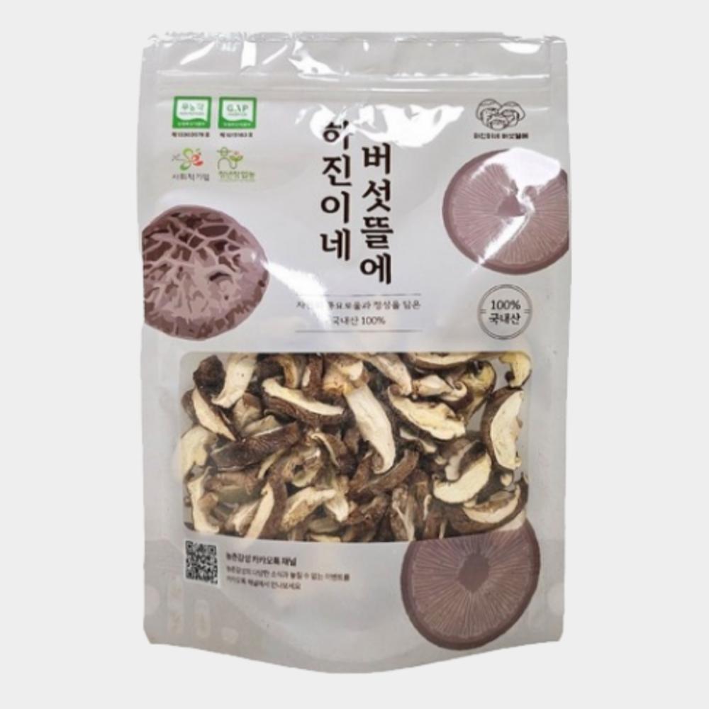 Organic, pesticide-free dried shiitake mushroom slices from Hajin's Mushroom Garden, 100g