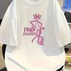 Sommar Ny Rosa Pantern T-shirt Y2K Mode Lös Casual Mångsidig Kortärmad Toppar Söt Rosa Pantern Kortärmad Toppar