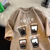 Amerikansk Retro Trendig Katt Bomulls-T-shirt Män Kvinnor Sommar Lös Par Kortärmad Toppar Harajuku Y2k Vintage Vattentvättad T-shirt