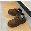 Sheepskin version~ Leather round head Crazy Horse brown Martin shoes small leather shoes women's platform muffin single shoes
