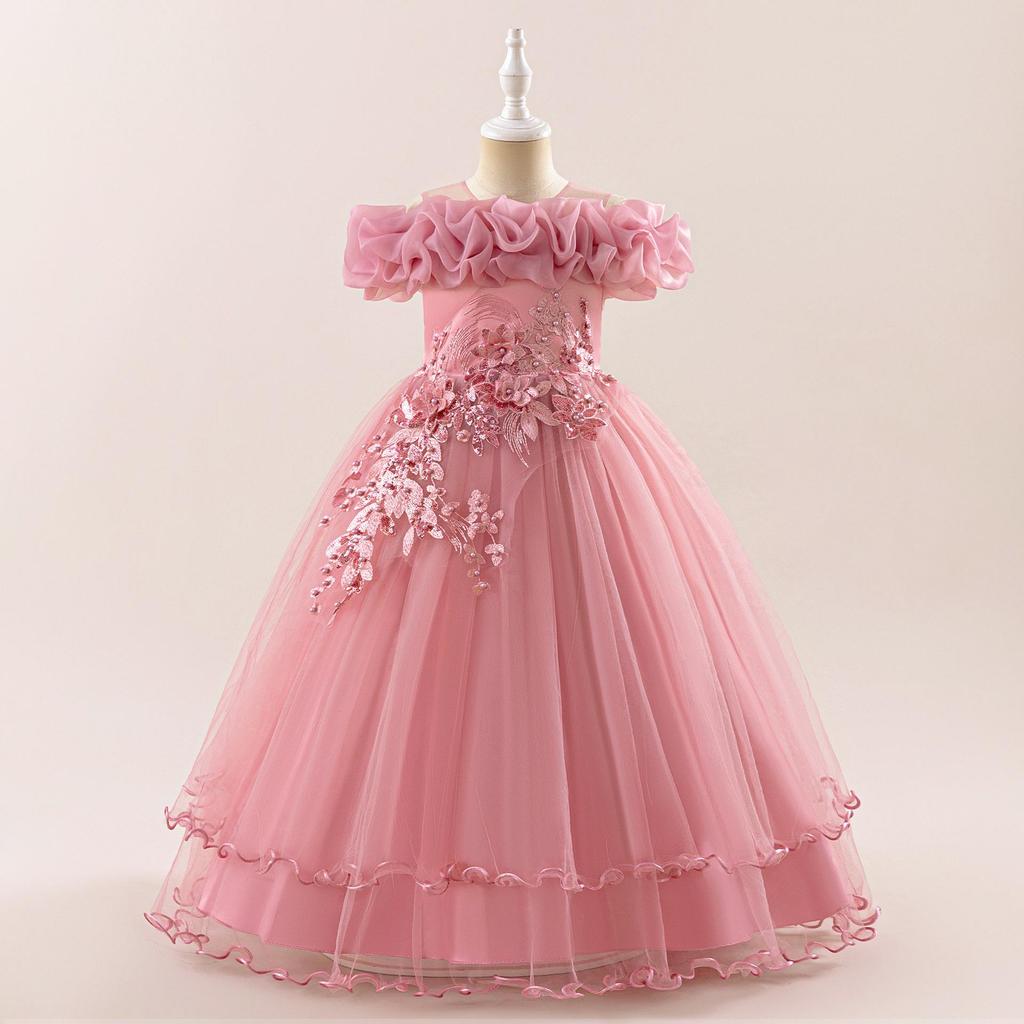 Denna förtrollande klänning är perfekt för att göra en storslagen entré vid alla formella evenemang.. Tillverkad av en mjuk bomullsblandning, den har en nyckfull enaxlad design som tillför en touch av elegans och modern flärd.. Den delikata tyllöverdelen skapar en vacker prinsesslik silhuett, vilket säkerställer att hon känner sig som kunglighet.. Idealisk för bröllop, fester eller något speciellt tillfälle där hon vill glänsa.