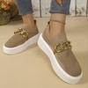 Stora storlekar tjocksulade flugvävda låga enkelskor dam vår och höst nya kedjedekorativa fotöverdrag damskor