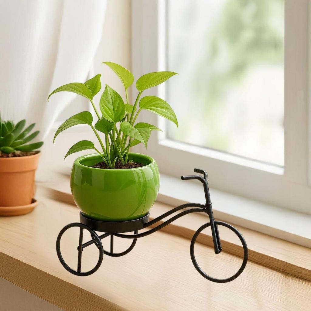 Trampa med stil: Det cykelformade stativet är inte bara en växthållare – det är en konversationsstartare! Ta hem vintagecharm med