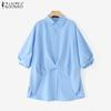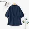 ZANZEA Women Round Neck 3/4 Sleeve High Low Solid Color Casual Loose Blouse
