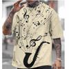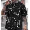 Fashionable piano key pattern T-shirt, summer popular short sleeved round neck 3D note printed T-shirt, simple casual loose T-shirt