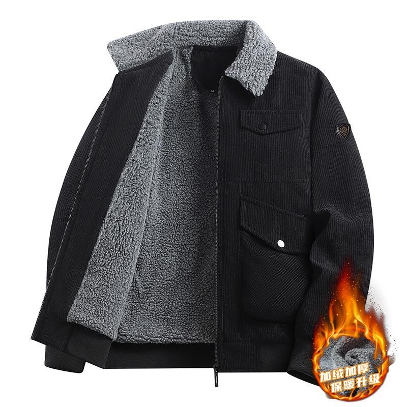Herrhöst- och vinterjacka ståkrage kläder avslappnad höstmode snygg blå manchester herr fleecejacka