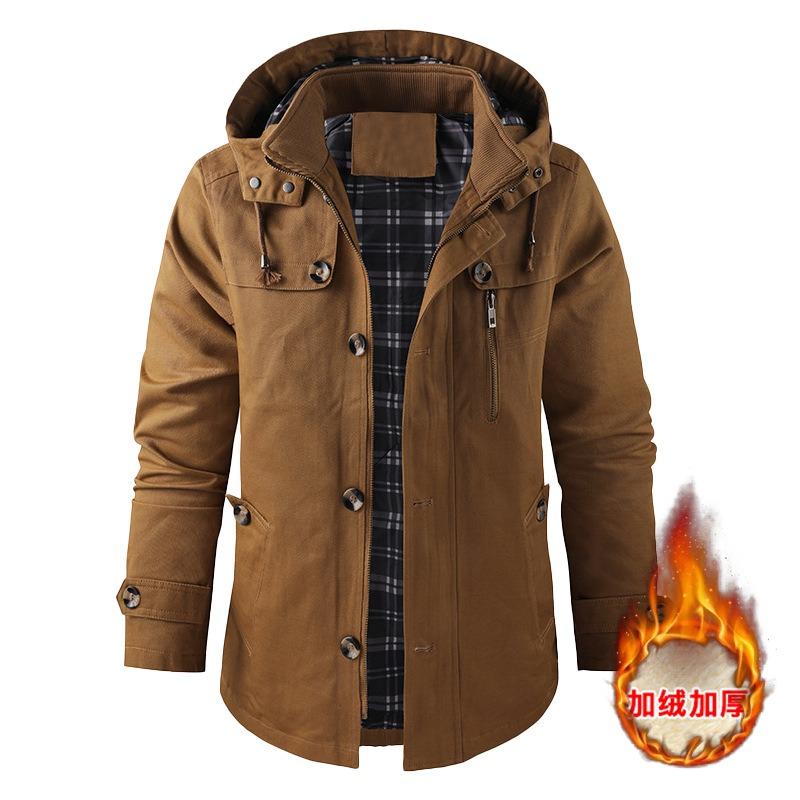 Medium and long men's hooded jacket men's washed autumn and winter jacket men's large size trench coat tooling