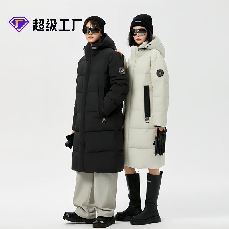 Extremt kall utomhus vattentät lång dunjacka för män och kvinnor, lös och förtjockad huva vit ankdun knälång jacka på vintern