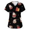 Dammode Kortärmad Jultryck V-ringad Ficka Arbetskläder Toppar
