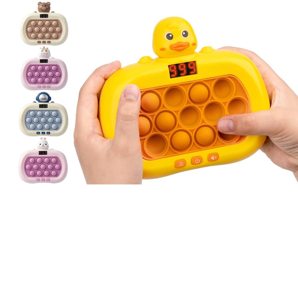 🐻【Innovativt Whack-A-Mole-spel】Det här elektriska spelet ger dig den beroendeframkallande bubbelpoppklassikern i hög hastighet. Tillverkad av högkvalitativt ABS-material, den erbjuder en bekväm beröring och är lätt att rengöra. Den är också stöttålig och hållbar, med knappar som är designade för att hålla.. Den ergonomiska designen säkerställer att dina händer inte gör ont ens efter utökad speltid. Den bärbara storleken gör att du kan njuta av spelet när som helst och var som helst. Volymen är justerbar och kan ställas in på tyst.