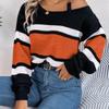 Damtröja med bar axel - Färgblockrandig tröja med klockärm och metallknappar Höst Vinter Vardagstickat