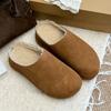 Nya damtofflor Stängd tå Rund tå Mockaklackar Höst Nya Retro Enfärgad Platt sula Damslingbackskor