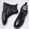 Vinterstövlar av högkvalitativt läder för män, motorcykelstövlar, trendiga skor, vardagsskor, lyxmärke, tjock sula, kängor