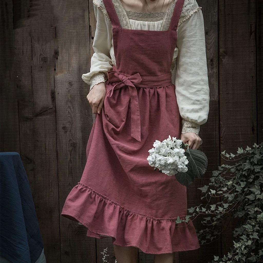 Nordic Solid Color French Pastoral Style Oil-Proof Apron for Kitchen Cooking