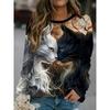 Daily casual 3D cute cat printed women's fashionable round neck long sleeved T-shirt