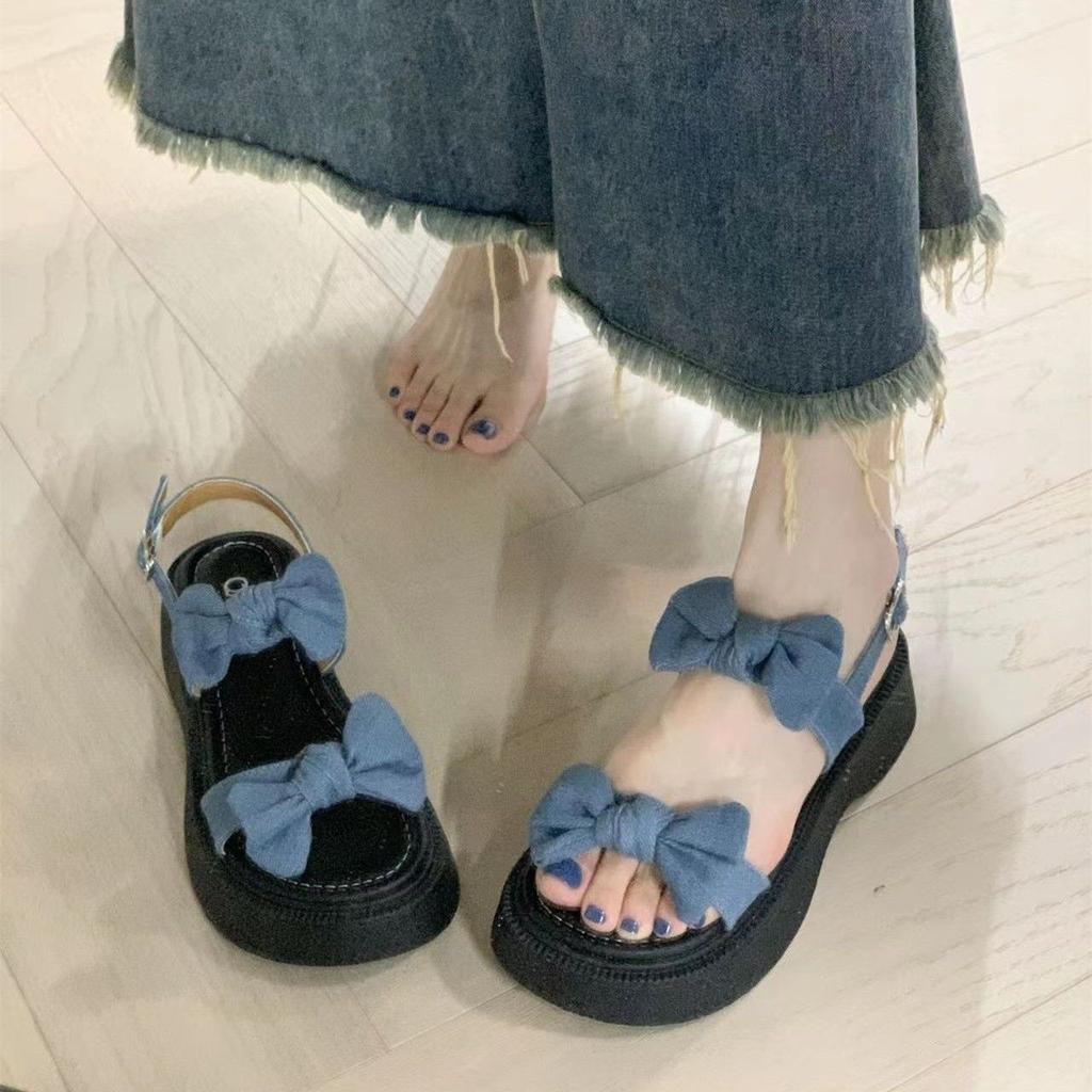Damskor Rosett Sommar 2024 med Mellanhöga Klackar Sandaler för Kvinna Kilklack Plattform Vattentäta Skor Öppen Tå Blå Sandal Dagligen