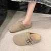 Mode Damskor 2025 Mode Enfärgad Baotou Spänne Tofflor Hot Selling Damers Utomhus Fritid Bekväma Platta Tofflor