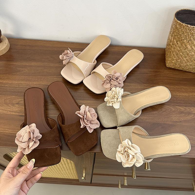 Mode Ny Stil Populära Sommar Damtofflor med Öppen Tå och Blomma Mode Damer Utomhus Koncisa Strandsemester Tofflor Zapatos Mujer