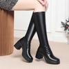 Mode Svarta Eleganta Klackskor för Kvinnor Plattformsskor Läder Långa Höga Klackar Damstövlar Vinter Knähöga Skaft 2024 Nya Arbete Heta