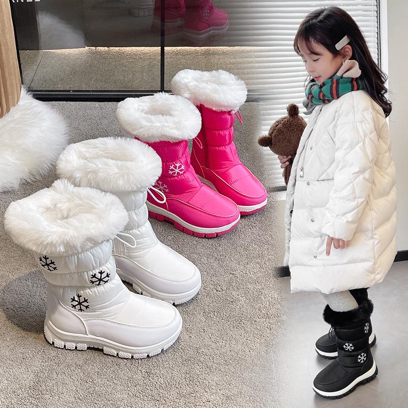 Flickor Snöstövlar Barn Vinter Varma Fleecefodrade Små Mellanstora Stora Storlekar