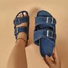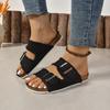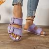 Mode Dam Sandaler Sommar Nya Rund Tå Öppen Tå Tyg Metallspänne Halkfria Slitstarka Platta Tofflor