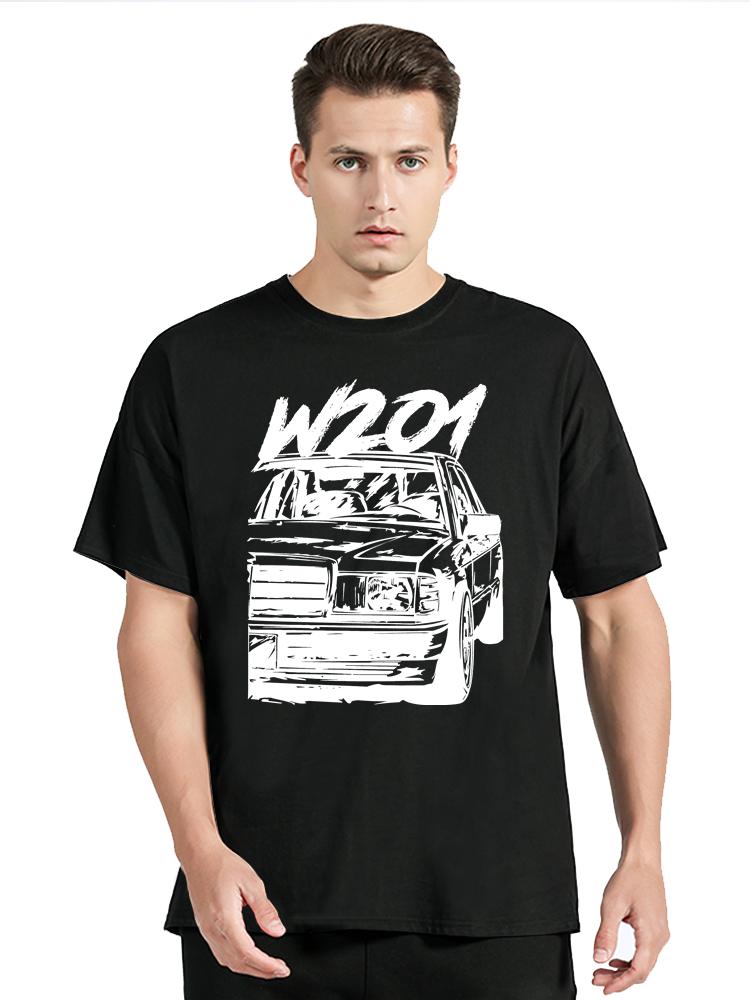 Vintage W201 190e Bil T-shirt Klassiska Bilar Bomullstoppar Streetwear Casual O-ringad T-shirt Nya Herrkläder Oversized T-shirt Toppar