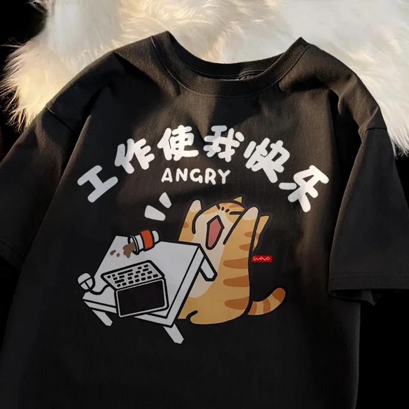 Fashionable New Trend Cat Print for Men and Women Retro Personalized Pattern T-shirt Loose and Fashionable Round Neck T-shirt