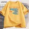 Ät de rika T-shirt Män Kvinnor Rolig Bomull Kortärmad T-shirt Streetwear Tryckt T-shirt Casual Roliga Toppar Herrkläder