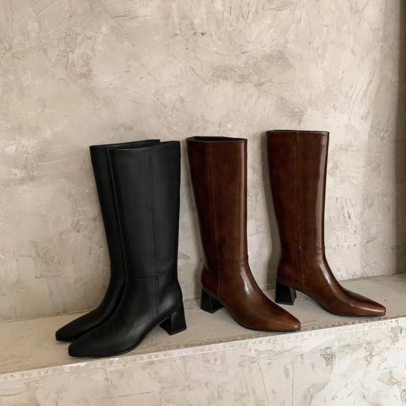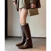 Mode Långa Stövlar Dam Vinter Nya Retro Bruna Raka och Vida Riddarstövlar Platåskor Bruna Långa Stövlar Dam