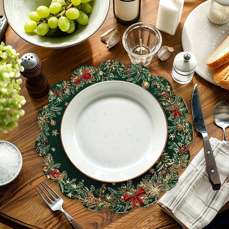 1 st Bordsunderlägg Fest Placemat Matbord Tryckt Jul Polyester Kök Rund Matbord 38x38cm