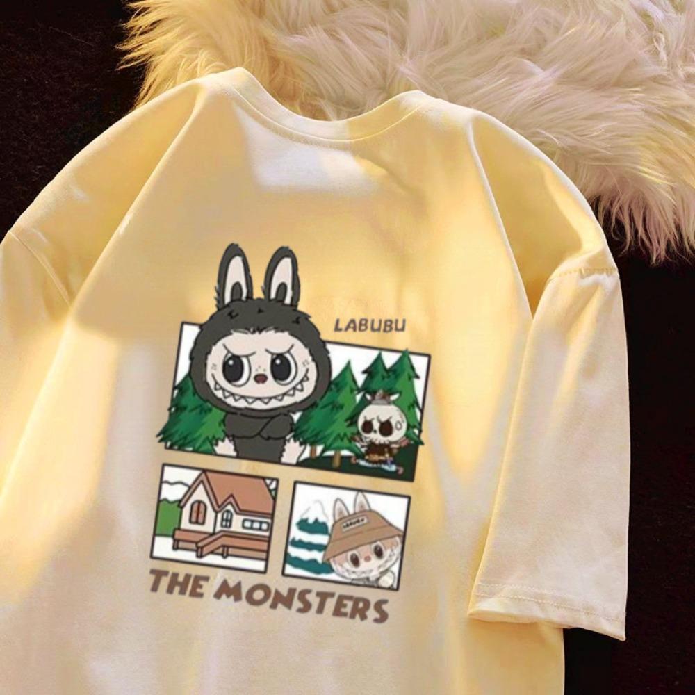 Söt LABUBU Sommar Ny Kortärmad T-shirt för Damers Casual Mångsidig Tecknad Topp Bekväm Skjorta Baju Topp