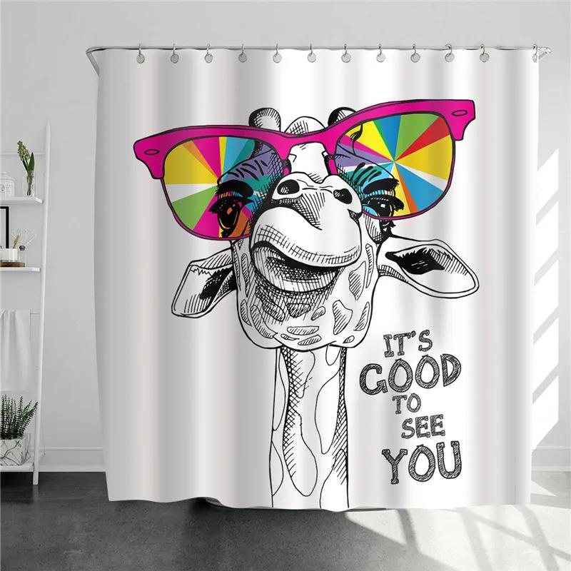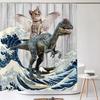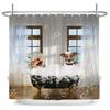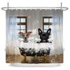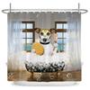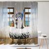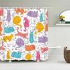 Funny Cute Cartoon Bathing Cat Dog Shower Curtains Bathroom Bathtub Decoration Waterproof Bath Curtain Home Decor with Hooks