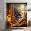 Window View with Moonlit Ocean Shower Curtain Warm Autumn Decor for Bathroom Orange Floral Lighting